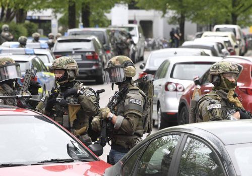Schwer bewaffnete Polizisten umstellen ein Schulhaus in Obergiesing, die Maschinenpistole im Anschlag. Etwa 900 Schüler werden aus dem Gebäude geführt – Terror-Angst an der Elly-Heuss-Realschule am Giesinger Bahnhof.