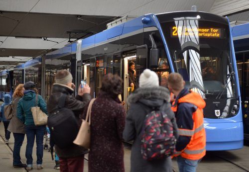 Großer Bahnhof: Viele Trambahn-Begeisterte sind am Sonntag in den Betriebshof der Münchner Verkehrsgesellschaft (MVG) an der Einsteinstraße gekommen, um die neuen Avenio-Züge zu besichtigen. Die Regierung von Oberbayern hatte pünktlich zum Fahrplanwechsel die Zulassung für neun der 22 neuen Bahnen e