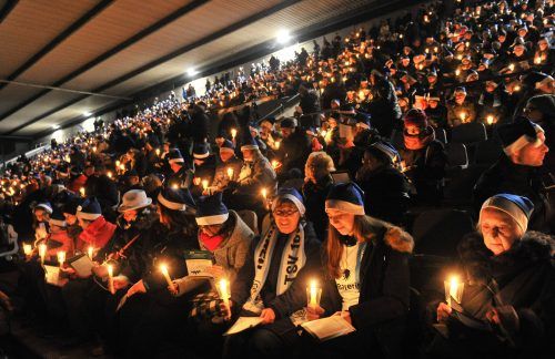 Im Grünwalder Stadion schmettern Fans zum siebten Mal weihnachtliche Weisen