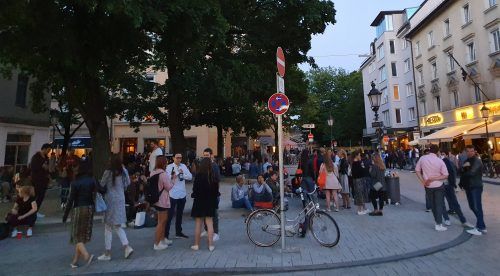 Vor Jahren wurde der graue Schwabinger Wedekindplatz aufgehübscht, seit der Umgestaltung ist er in lauen Sommernächten nicht wiederzuerkennen. Zwischen Englischem Garten und Münchner Freiheit treffen sich hunderte junger Menschen. Und weil Clubs und Bars geschlossen sind, bleiben die meisten Feiernd