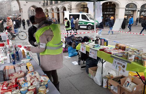 Aktion am Stachus: Lebensmittel und warme Kleidung für Bedürftige