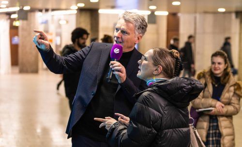 „Wie clever bist du?“, fragen Monitore in einem Zwischengeschoss des Münchner Hauptbahnhofs. Menschen bleiben stehen und beobachten das Spektakel, bevor sie weiterziehen. An diesem Samstagvormittag hat Jörg Pilawa einen Stopp in München eingelegt, um seine neue Show „Das 1% Quiz –