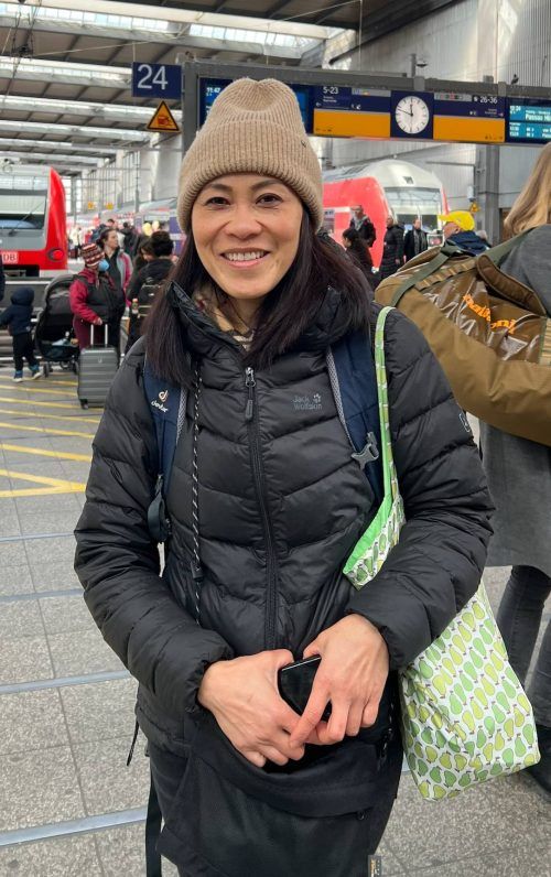 Ich warte auf meinen Zug nach Ingolstadt. Dort habe ich früher eine lange Zeit gewohnt. Jetzt fahre ich hin, um meine besten Freunde zu besuchen. Von München aus ist es zum Glück nur ein Katzensprung mit dem ICE. Darum reise ich fast nur mit dem Zug. Eigentlich bin ich mindestens einmal im Monat dor