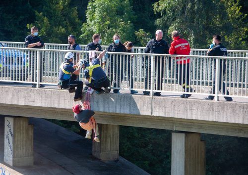 Klima-Aktivisten hatten sich im September 2021 von einer Autobahnbrücke abgeseilt, um gegen die Internationale Automobil-Ausstellung IAA zu demonstrieren. Gestern sollte der Fall vor dem Amtsgericht Ebersberg verhandelt werden. Eigentlich. Denn die Angeklagten – drei Frauen und ein Mann – setzten au