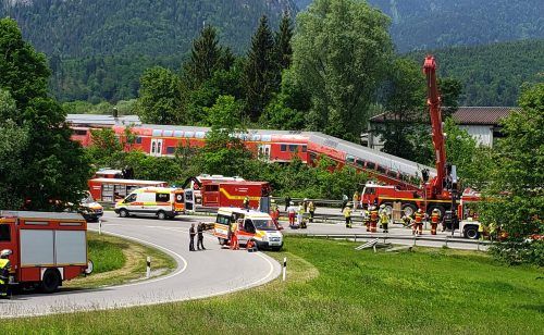 Zu den Fällen, bei denen die 3D-Technologie eingesetzt wird, gehört das Zugunglück von Burgrain (Foto). Am 3. Juni 2022 starben fünf Personen, 78 wurden verletzt, als zwischen Garmisch und Farchant ein Zug entgleiste. LKA-Beamte waren am Unglücksort, um die Waggons, die Gleise und das Schienenbett d