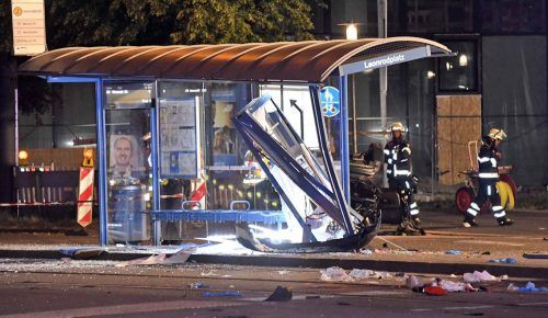 Wie immer fahren die Trambahnen an der Station Leonrodplatz am Sonntag ein und wieder ab. Menschen steigen aus, manche bunt angezogen – wohl auf dem Weg zum nahe gelegenen Tollwood-Festival, bahnen sich ihren Weg vorbei an dem zerstörten Wartehäuschen. Ein ku