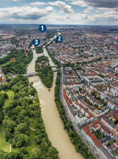 Sie nagt an ihren Ufern, schwappt rechts und links, bahnt sich neue Wege, wirbelt auf, gräbt sich ein. Was der Isar im Weg ist – Steine, Pflanzen, Zweige, Äste – nimmt sie mit oder häuft sie mit Sand und Kies wieder auf. Ufer werden so geformt. Auch Inseln wachsen auf diese Weise