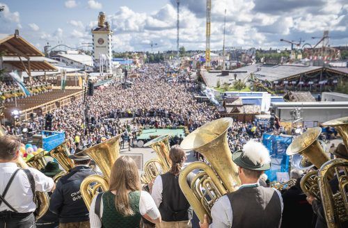 Bei bestem Wetter hat gestern an der Bavaria das Platzkonzert der Wiesn-Wirte stattgefunden. Traditionell dirigierte Oberbürgermeister Dieter Reiter (SPD) den Bayerischen Defiliermarsch. Auch Wiesn-Stadträtin Anja Berger (re.) durfte vor den rund 300 Musikanten den Taktstock schwingen – nach einem S