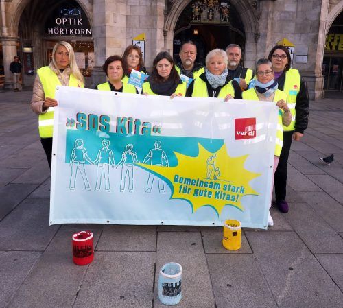 München – Die Lage an den Kindertagesstätten ist angespannt. Der Fachkräftemangel macht auch vor den Münchner Einrichtungen nicht Halt. Mit wöchentlichen Mahnwachen unter dem Motto „Es donnert in den Kitas – Kinder und Beschäftigte gefährdet!“ wollen Erzieher auf den Notstand aufmerksam machen.
