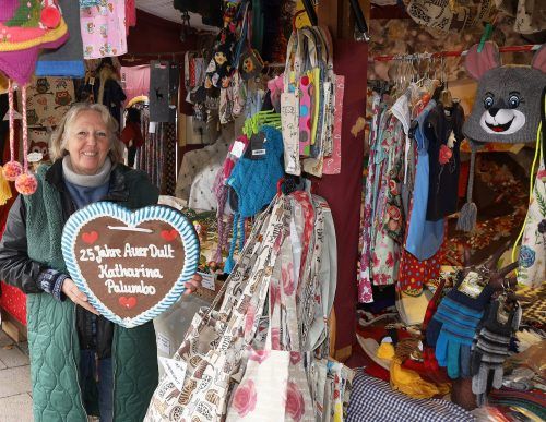 Für Katharina Palumbo war gestern ein ganz besonderer Tag: Denn die 67-jährige Beschickerin der Auer Dult hat Jubiläum gefeiert. Zu ihrem 25. Jahrestag hat ihr Baumgärtner eine Ehrenurkunde und ein großes Lebkuchenherz überreicht. So ist es Tradition.