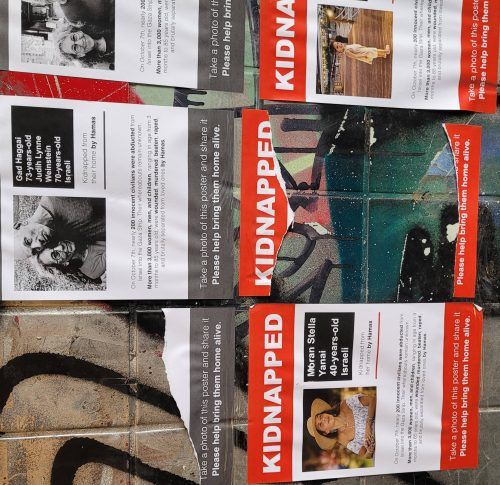 Die Plakatkampagne „Kidnapped“ („Entführt“) wurde von den New Yorker Künstlern Nitzan Mintz, Dede Bandaid und Tal Huber ins Leben gerufen. Sie wollen den Hamas-Geiseln ein Gesicht geben – und das auf der ganzen Welt. Von New York bis Neuseeland, von Ecuador bis in die Tschechische Republik hängen di