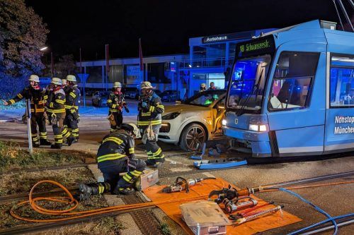 Ein 68-jähriger Autofahrer ist beim Zusammenstoß mit einer Trambahn an der Westendstraße leicht verletzt worden. Der Fahrer hatte am Sonntag gegen 18 Uhr wohl beim Abbiegen die Tram übersehen, sie fuhr seitlich in den Wagen. Dabei verformte sich der Wagen so, dass der Fahrer nicht mehr alleine ausst