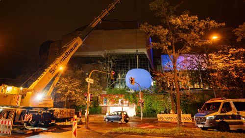 Während bei gängigen Umzügen ein einfacher Transporter reicht, waren hier gleich zwei Autokräne nötig! Schließlich wiegt das zu transportierende Kunstwerk satte zwölf Tonnen – mehr als zwei Elefanten. Das „Gerundete Blau“ ist am Wochenende per Sondertransport vom Gasteig zu sei