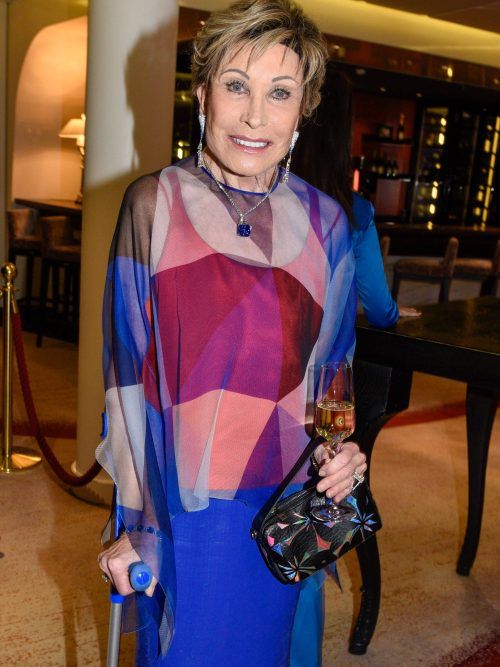 Wäre da nicht die Krücke, würde man Antje-Katrin Kühnemann (78) nichts ansehen. Elegant steht sie im Foyer vom Hotel Vier Jahreszeiten, im aktuellen Designerkleid mit prachtvollem Schmuck – und ihrer guten Laune. „Eigentlich müsste ich auf zwei Krücken gehen“, sagt sie im Gespräch unserer Zeitung un
