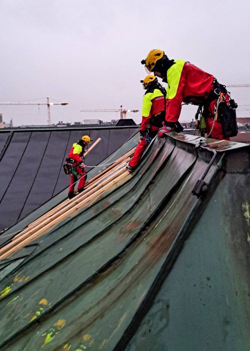 München hat stürmische Stunden hinter sich. Größere Schäden blieben am Mittwoch zwar aus, trotzdem hielt Tief Jitka die Feuerwehr auf Trab. Bauzäune stürzten um, Äste brachen ab. Der spektakulärste Einsatz ereignete sich aber am Justizpalast nahe dem Stachus. Dort an der Elisenstraße löste der Wind
