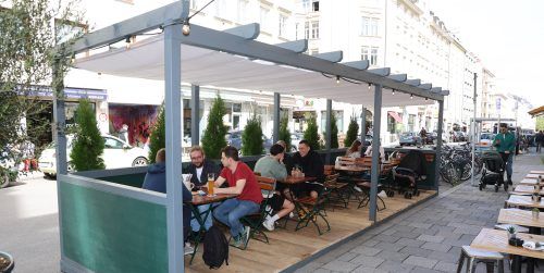Ein kleiner Olivenbaum ragt am Ende des Schanigartens in die Höhe – mitten in der Maxvorstadt. Gäste sitzen dort bei 23 Grad am Straßenrand in den Boxen, stoßen an, um sie herum blühen die Blumen. „Ein bisschen wie in Italien – du hast einfach wieder dieses Fla