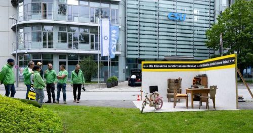 Mit zerstörten Möbelstücken aus den Hochwassergebieten hat Greenpeace am Freitag vor der Zentrale der CSU in München gegen die Politik der Partei demonstriert. Die Umweltschutzorganisation sprach von einer
