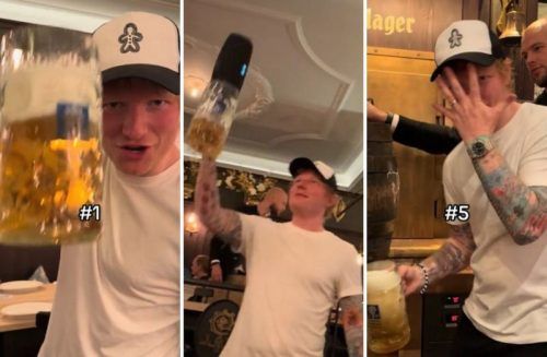 Ganze fünf Mass trank Ed Sheeran in einem Münchner Wirtshaus nach dem Fanfest Euro 2024. © Screenshot TikTok