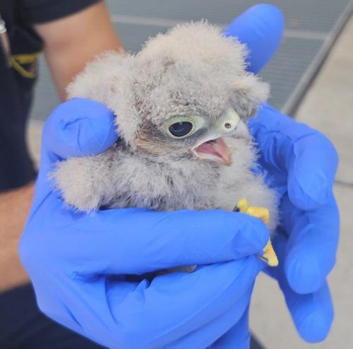 Nach einem misslungenen ersten Flugversuch ist ein junger Turmfalke von der Feuerwehr an der Rupert-Bodner-Straße in Aubing zurück in seinen Nistkasten gebracht worden. Die Feuerleute hatten zunächst z