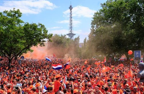 Der Fanmarsch der niederländischen Anhänger geht heute durch den Olympiapark