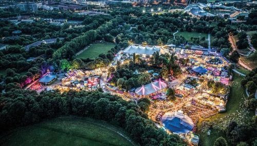 Blick auf das Tollwood-Sommerfestival auf dem Olympiagelände. © Anton Brandl