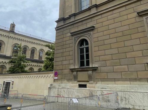Eine Zeit lang war ein gutes Stück an der Residenzseite zum Marstallplatz abgesperrt. Ein Schild warnte vor möglichem „Steinschlag“. Der Grund: Am 10. Juni hatte sich ein Stück aus dem Traufgesims an der Ecke des Cuvilliés-Theaters über dem Kabinettsgarten gelöst. Der Bereich wurde „durch die Verwal