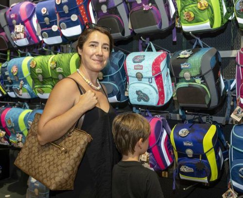 Schulranzenkauf: Kundin Gülsah Cagirici mit ihrem Sohn © Martin Hangen (3)