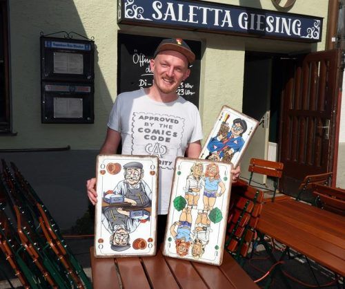 Vor ein paar Tagen sind vier große Kisten in der Giesinger Wirtschaft Saletta eingetroffen. Darin: 1000 Schafkopf-Kartenspiele mit einem ganz besonderen Design. Der Sendlinger Andi Papeli