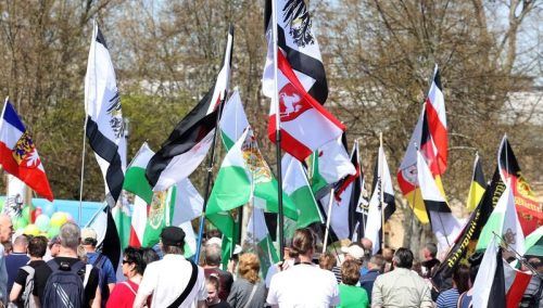 Reichsbürger mit Fahnen: Anhänger der Bewegung wollen am Samstag in München demonstrieren. © Bodo Schackow