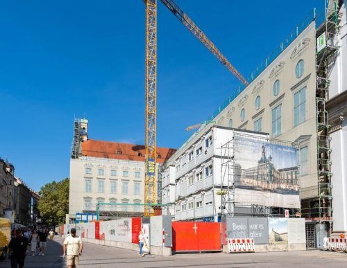 Die Baustelle der Alten Akademie in der Fußgängerzone. Seit der Pleite des österreichischen Großinvestors René Benko herrscht hier Stillstand. © Oliver Bodmer (2)