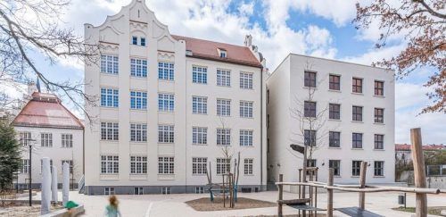 Die denkmalgerecht sanierte Grundschule an der Haimhauserstraße 23 in Schwabing. © Boris Storz