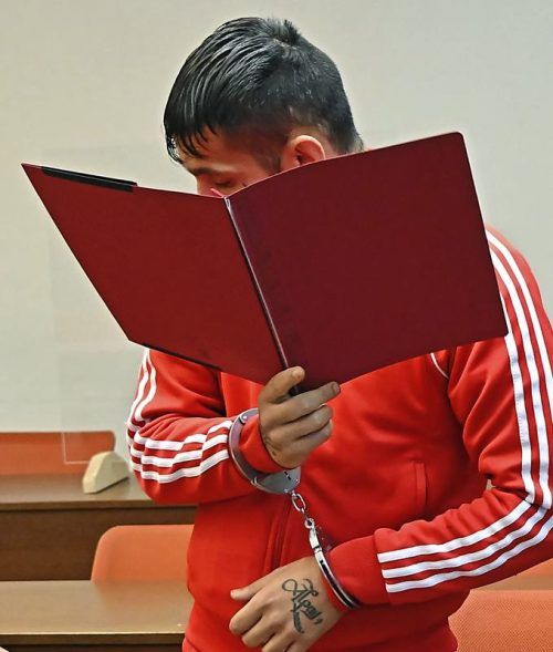 Der Angeklagte wurde gestern mit Fußfesseln zum Prozess geführt. Er hatte Zeugen unter Druck gesetzt. © Sigi Jantz