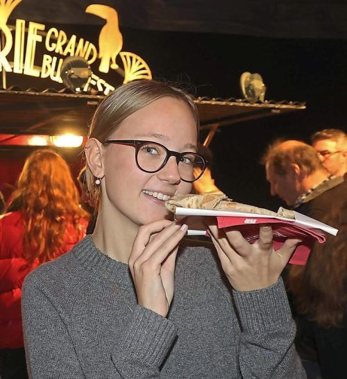 Unsere Reporterin Lara Krajinovic probiert einen Crêpe. © M. Götzfried