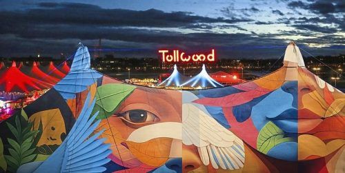 Die Zeltdächer des Tollwood werden mit zehn Projektoren bespielt. © Bernd Wackerbauer