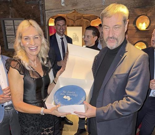 Ministerpräsident Markus Söder brachte Saskia Greipl-Kostantinidis eine Torte mit. © privat