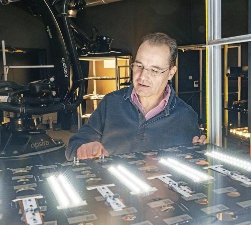Leiter des Labors: Martin Rempfer checkt die LED-Lampen, geprüft werden sie automatisch. Genauso wie eine Kaffeemühle (Foto unten rechts). Mit ihr werden in kürzester Zeit 1000 Durchläufe simuliert. © Oliver Bodmer (3)