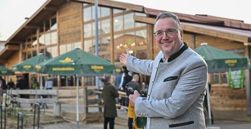 Bereit fürs Oktoberfest: Giesinger-Chef Steffen Marx präsentiert sein 800-Mann-Festzelt, mit dem er auf die Wiesn will. © Götzfried (2), dpa