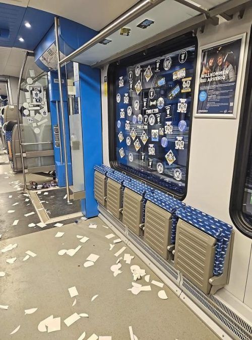 Sticker, Schmierereien und aggressive Stimmung: Rund 60 übermütige Löwenfans haben am Samstagnachmittag in einem Zug randaliert. Die Sechziger-Ultras brachten Graffiti im Waggon an, pappten