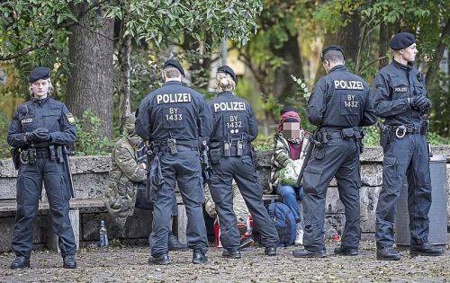 Eine Polizeikontrolle im Alten Botanischen Garten. Die Stadt baut jetzt einen Bolzplatz am Neptunbrunnen, um den Problem-Park zu beleben und für Münchner wieder nutzbar zu machen. © Achim Schmid
