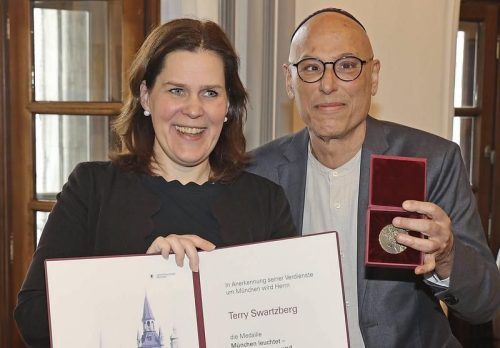 Ehre für Terry Swartzberg: Als Anerkennung für sein vielfältiges ehrenamtliches Engagement für die Aufklärung über das Judentum und die politische Bildung über den Holocaust wurde er nun von der Stadt ausgezeichnet. Er erhielt von der dritten Bürgermeisterin Verena Dietl (SPD) im Rathaus die Medaill