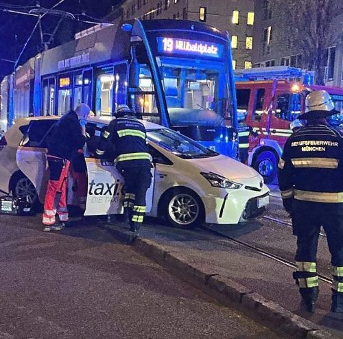 Dieser Taxifahrer hatte am Samstag einen wachen Schutzengel: Obwohl er mit seinem Wagen in der Bayerstraße in eine Tram gedonnert ist und eingeklemmt wurde, überstand der 30-Jährige den Unfall mit leichten Verletzungen. Gleich mehrere Zeugen hatten die Kollision um kurz nach 22 Uhr der Feuerwehr gem
