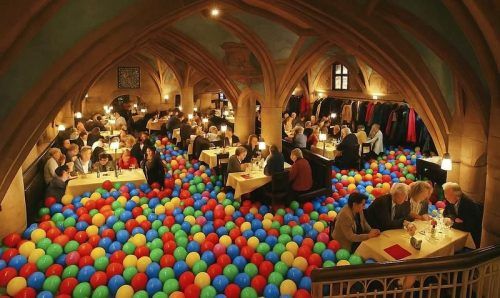 Eine lustige Vorstellung, erstellt von der KI: ein Bällebad im Ratskeller. © ChatGPT/Imago