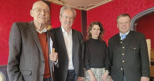 Wollen weiterhin einen Bürgerentscheid erzwingen: Max von Heckel, Christian Ude, Nele Joas und Robert Brannekämper (v. l.) kämpfen gegen die Türme. © Schuri/Herzog & de Meuron