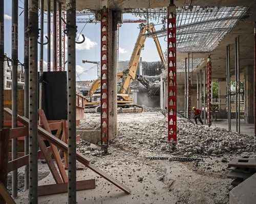 Großabbruch: Vom ursprünglichen Plan, zwei Drittel vom alten Postbank-Gebäude zu erhalten, blieb nicht viel übrig. Das m