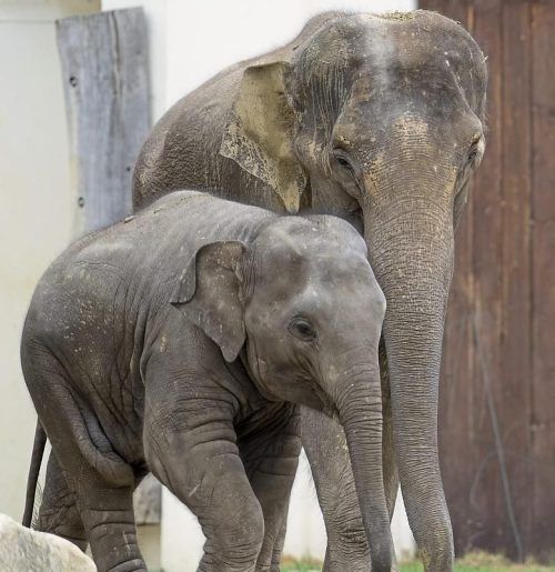 Elefantenkuh Rani (15) und Tochter Savani (2) sind neu in Hellabrunn. © Jens Hartmann (2), Hellabrunn
