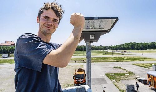 Elektro-Spezialist Florian Ehmann baut die Lampen auf der Theresienwiese auf. Sie gleicht schon vor dem offiziellen Start zum Oktoberfest-Aufbau einer Großbaustelle. © Olive