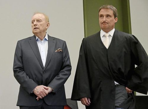 Auf der Anklagebank: Alfons Schuhbeck wartet mit seinem Anwalt Norbert Scharf auf den Beginn des dritten Prozesstages. © SIGI JANTZ