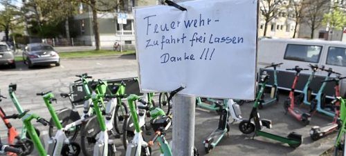 Wildparkerei ist das Problem: E-Roller in Laim behindern eine Feuerwehrzufahrt. © Schlaf, Thedens