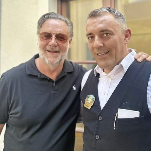 Russell Crowe und Kellner Ivan. © Hofbräuhaus
