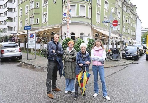 Alexander Quiska (53), Sabine Fenzel (64), Renate Wimmers (75) und Elinda Quiska (15, von links) wehren sich gegen die Zustände am Rolands Eck. © M. Götzfried